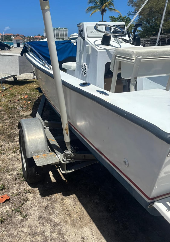 This 2005 18.5 foot Blue Runner Center Console is powered by a brand new 2023 Yamaha 115hp four stroke outboard with under 5 hours. It has a 40 gallon fuel tank in the floor. A JL Audio sound system that is not installed as yet is included. It also has a digital gauge for the motor, a compass and navigation lights. Included in the sale is a trailer designed for use with the boat. Bahamas duty paid. Price: $32,000.