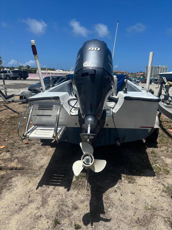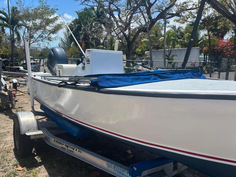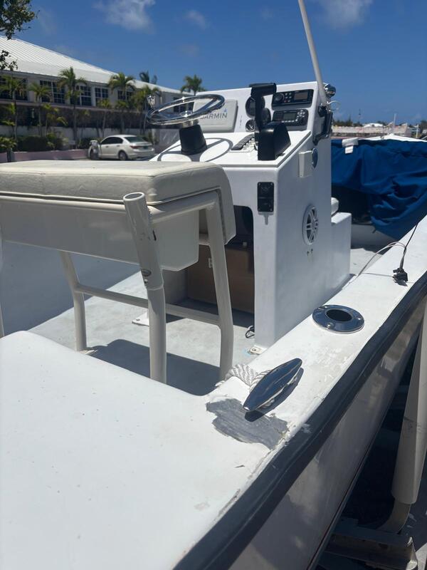 This 2000 18ft Spanish Wells style Skiff is powered by a 2023 90hp Yamaha with only 60hrs. Features include a Fusion stereo, VHF radio and Garmin GPS, Bimini top. All new electrical and electronics. Price: $20,000.