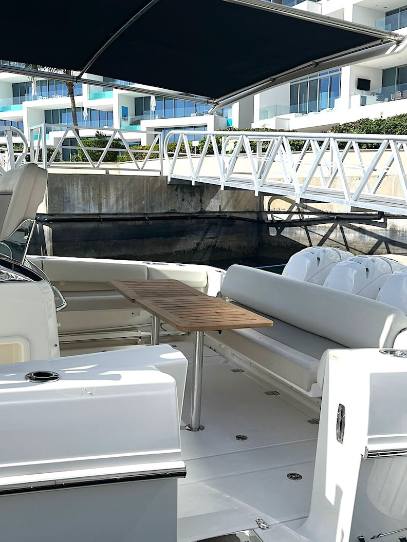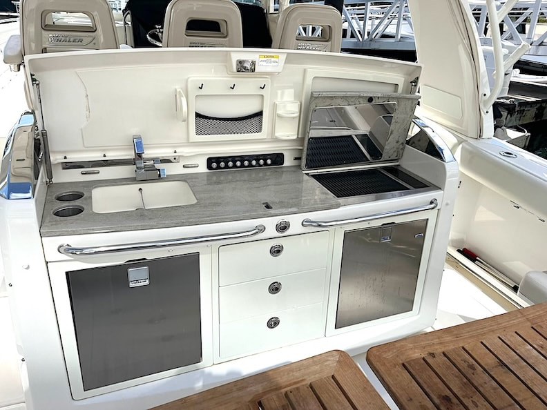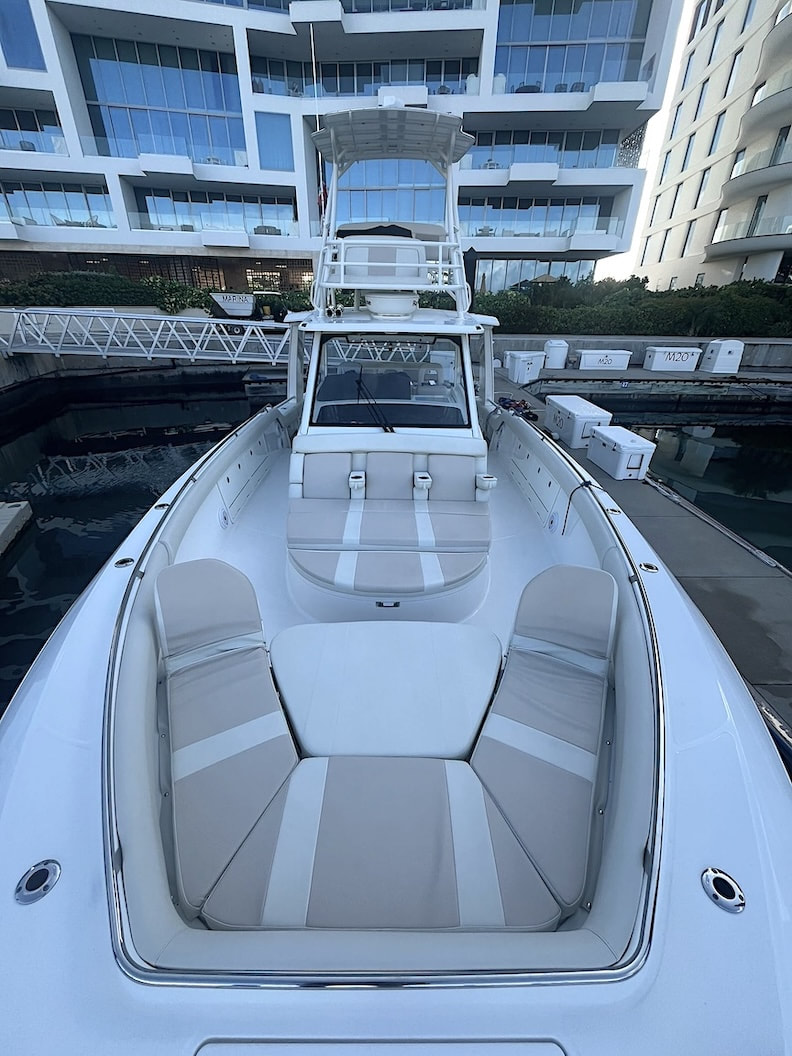 This 2017 42ft Boston Whaler 420 Outrage is powered by quad 350hp Mercury Verados with approximately 1150 hours (300 hour service completed July 2025 by Mercury authorised mechanical specialist). Boating Magazine’s “Boat of the Year”. This Boston Whaler 420 Outrage is captain maintained and in beautiful condition. This is Boston Whaler’s flagship model and the most popular large hybrid center console ever built. Considered one of the safest boats on the water today with its unsinkable reputation. This 420 is optioned for families that require a safe comfortable platform for cruising, day boating, fishing, and beaching. Features include a Sea Keeper, new bottom paint July 2025, exterior hull waxed July 2025, under water lights, top speed 40 knots, cruise speed 33 knots, 600 gallon fuel tank, 60 gallons water tank, 15 gallon diesel tank generator, hot water shower, AC in cabin, full JL AUDIO system, tons of storage, after deck refrigerator and freezer, cabin refrigerator. Lots of features. USA registered (on a cruising permit). Price: $399,000.